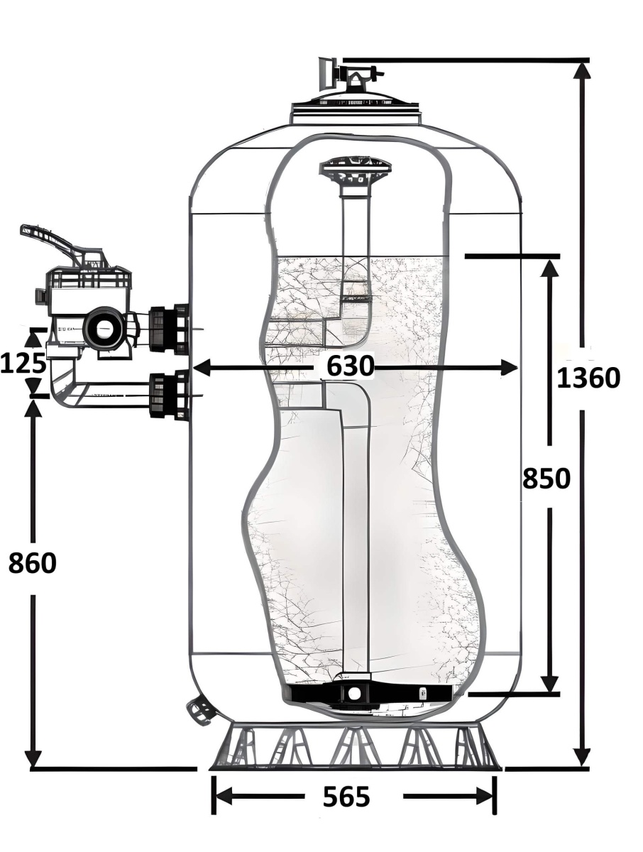 - Фильтр 15,5м3/ч Laswim WL-BDG 630мм М0,85 с боковым вентилем 1 1/2" (WL-BDG13600)